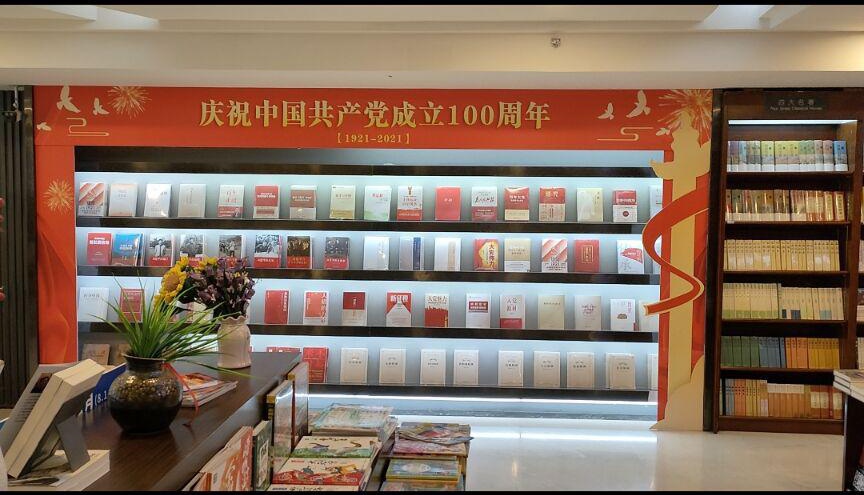 恰逢百年风华正茂,红色初心历久弥坚。国情寻迹大队在新华书店进行了国情考察,今年是中国共产党成立的100周年,新华书店为了贯彻党的思想,在书店最前面开展了“庆百年 读经典”活动,《伟大的历程》、《读懂中国优势》、《建党》等红色经典读物陈列在书架上,帮助读者更好地了解党的发展历程以及思想理念,树立制度自信,为国家的发展打下坚实的思想基础。