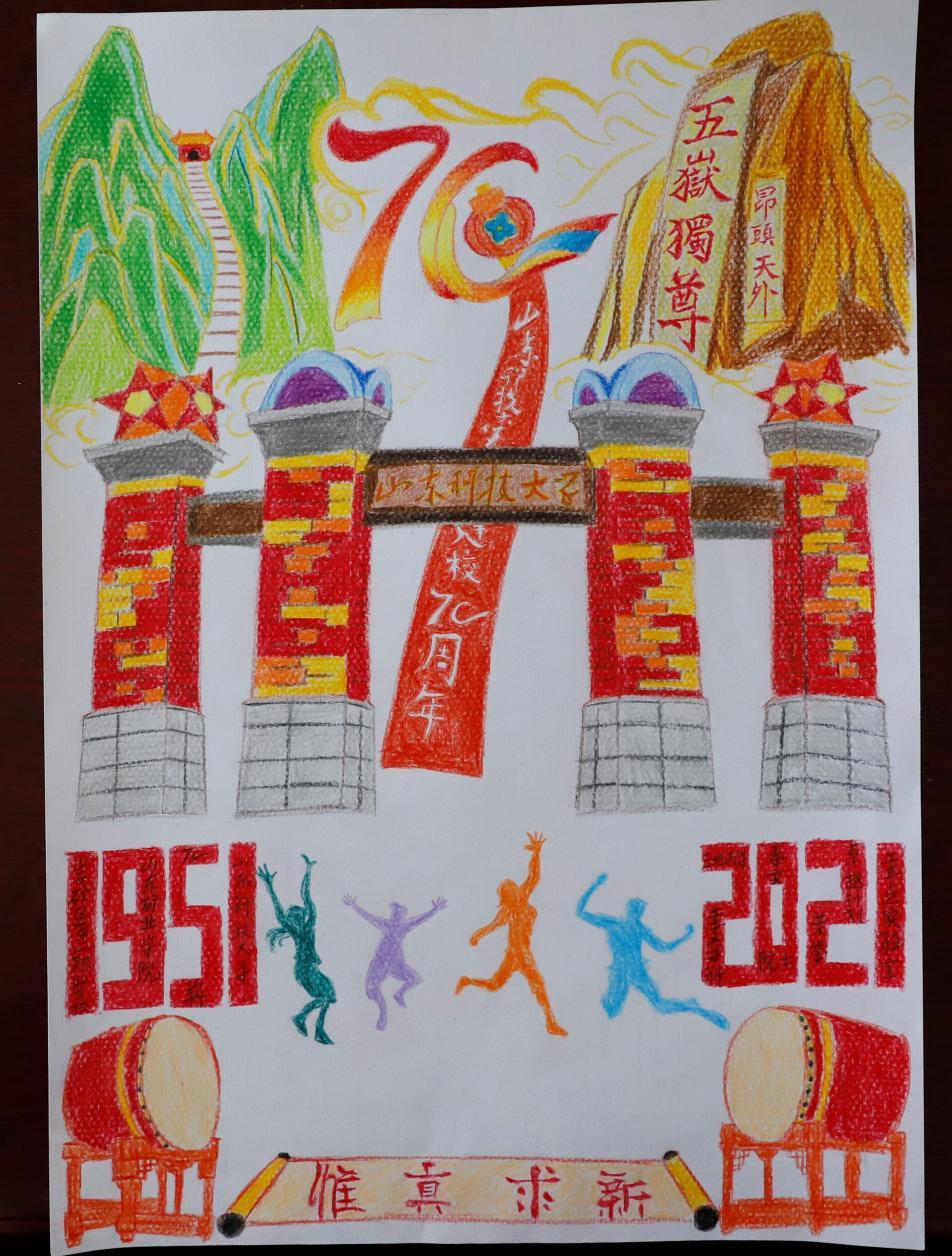 活动中,同学们通过各种精美的绘画和书法表达了对建校70周年的祝贺以及对科大未来发展的美好祝愿。参赛作品形式十分丰富,有清新典雅的国画画卷,有栩栩如生的素描作品,也有行云流水的书法笔迹……一幅幅生动的绘卷,一张张优美的书法,科大学子用笔墨丹青表达了对建校70周年的美好祝福。