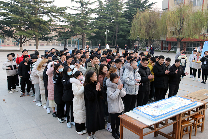 凛凛冬日料峭寒,股股暖流入心田。距2022年全国硕士研究生招生考试已不到20天,为鼓励考生积极迎考、增加考生备考信心,12月6日,英国上市公司365于西校园1c102、东校园文化广场举办考研誓师大会,公司党委副书记兼副经理裴国栋、团委书记谢清勇、全体辅导员出席大会,共同助力考研学子冲刺。