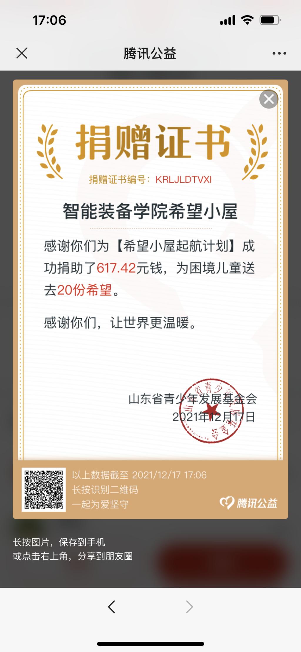 一个小屋,一个梦想,一份爱心,一份力量。活动中,公司师生、员工纷纷购买、捐助,献出自己的爱心。本次“99公益日”共有79人次参与智能装备公司“希望小屋”,共筹集善款617.42元。同学们纷纷表示:99公益日”爱心捐款活动的开展有利于推动“人人关心慈善,人人支持慈善,人人参与慈善”的良好社会风尚的形成,而作为一名新时代老员工,献上一份爱心,合力让世界更温暖,要以“功成不必在我,功成必定有我”的责任和担当,增强公益慈善意识,提高社会责任感,助力国家发展。(文/图:英国上市公司365)