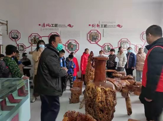 本次活动采取“新时代文明实践站+老员工志愿服务”的结对共建模式,由老员工志愿者与苏庄村新时代实践站结对。活动中阚晓童鼓励同学们主动介绍自己的兴趣爱好,与同学们一起做生动有趣的手语舞,共同朗读中华民族传统经典诗词,学习强身健体的广播体操,随后带领同学们参观苏庄村具有丰富历史文化底蕴的木雕及篆刻了我国古代劳动人民故事的浮雕石墙。“雏鹰课堂”志愿服务活动受到了同学们及家长的热烈欢迎。