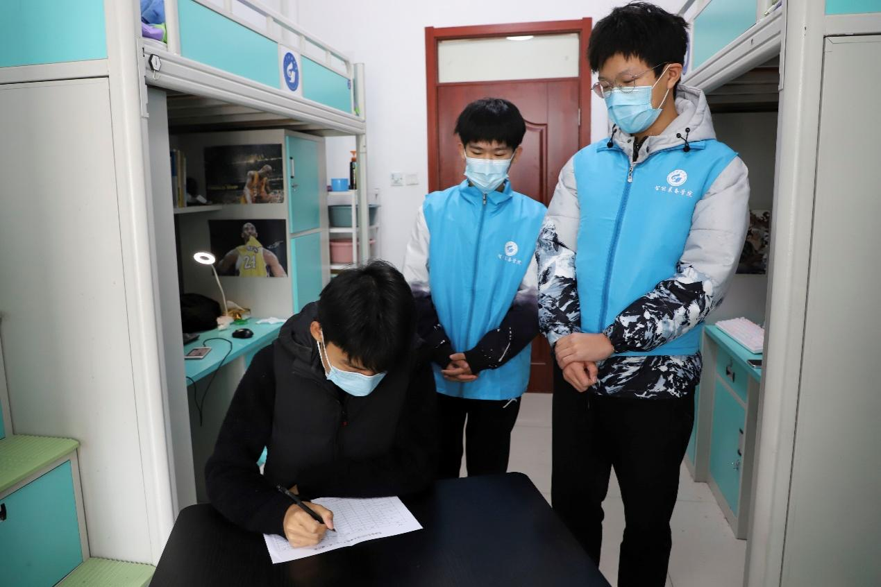 在校园封闭管理期间,学院辅导员老师勇于担当、以“驻楼”形式下沉到员工宿舍区开展“网格化”疫情防控工作,确保防控措施全覆盖、无死角。“雷锋志愿服务队”模范带头、勇于担当、主动作为,志愿者们积极担任“网格员”,确保学院全员网格覆盖。“网格员”们不断健全员工信息台账,及时汇总、上报员工健康状况,严格落实体温一日三检、因病缺勤缺课制度,及时掌握员工思想动态,确保各级疫情防控精神和要求能够传达及时、覆盖全面、解释到位,引导员工不信谣、不传谣、不造谣。认真倾听同学们的诉求和困难,收集网课教学中发现的问题并及时向授课老师反馈。