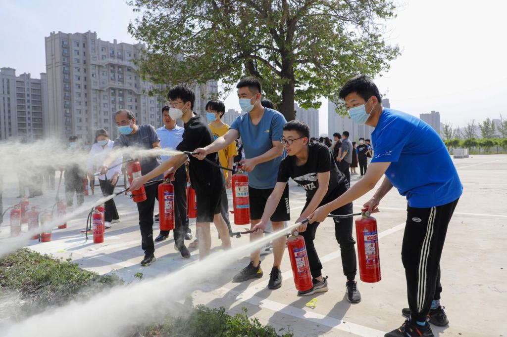 活动伊始,工作人员向同学们仔细讲解了实验室安全管理办法和宿舍管理条例,列举了实验室及宿舍可能存在的安全隐患,提醒大家平时生活学习水电操作安全、远离明火。随后,安保人员通过模拟火灾发生现场,仔细讲解了灭火器种类、使用注意事项及灭火常识,普及了火场中如何报警、火灾的预防和火场自救等消防安全基本知识,并示范了灭火器的正确使用方法。在认真学习了灭火要领后,老师们主动接过灭火器进行示范操作,邀请同学们现场使用灭火器灭火,以便提高对消防器材的使用能力,在安保人员的耐心指导下,最终圆满完成了灭火的实战演练。