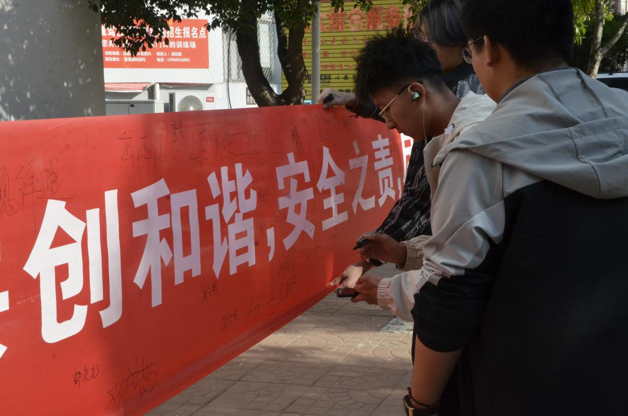 在活动开始时众多员工便被吸引驻足观看,工作人员也热情上前介绍此次活动的相关内容,并动员大家积极参与活动,响应“共创安全文明校园”的号召。受到现场热烈的氛围感染,过往的员工纷纷驻足签名,为安全文明校园的创建加油助威,纷纷表示自己会为安全文明校园的建设贡献一份力量。
