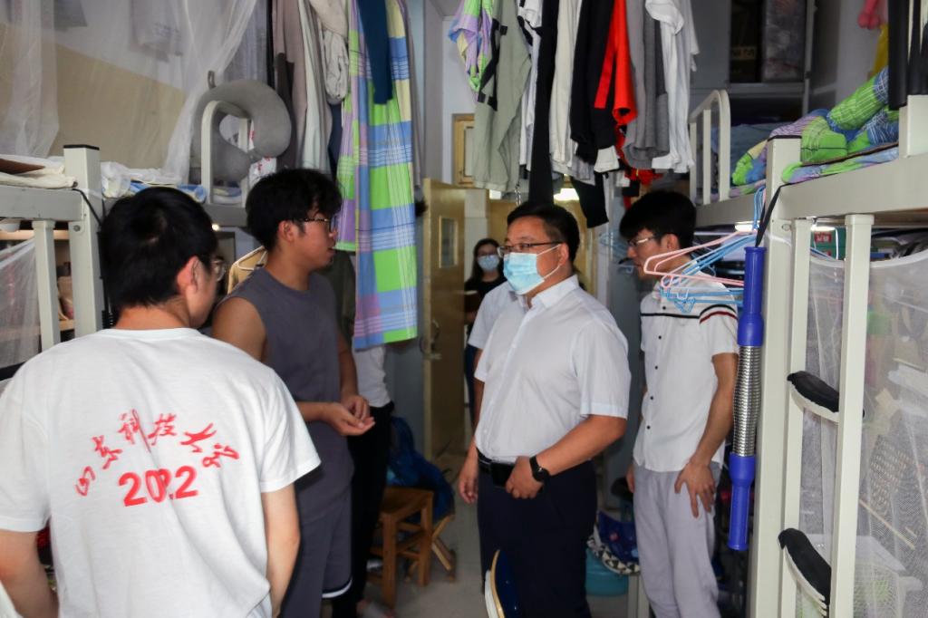老师们深入员工宿舍检查了卫生、用电用水安全情况,认真排查存在的安全隐患,并对毕业生宿舍情况进行了重点检查,并就同学们关心的问题进行了交流。在毕业生宿舍,黄德杰、裴国栋与毕业生们亲切交谈,详细询问同学们生活以及今后的工作打算,叮嘱同学们临近毕业,要注意自身安全,并勉励同学们,在今后的道路上要继续努力,创造新的辉煌,积极加入学院员工群,多为学院发展献言献策。