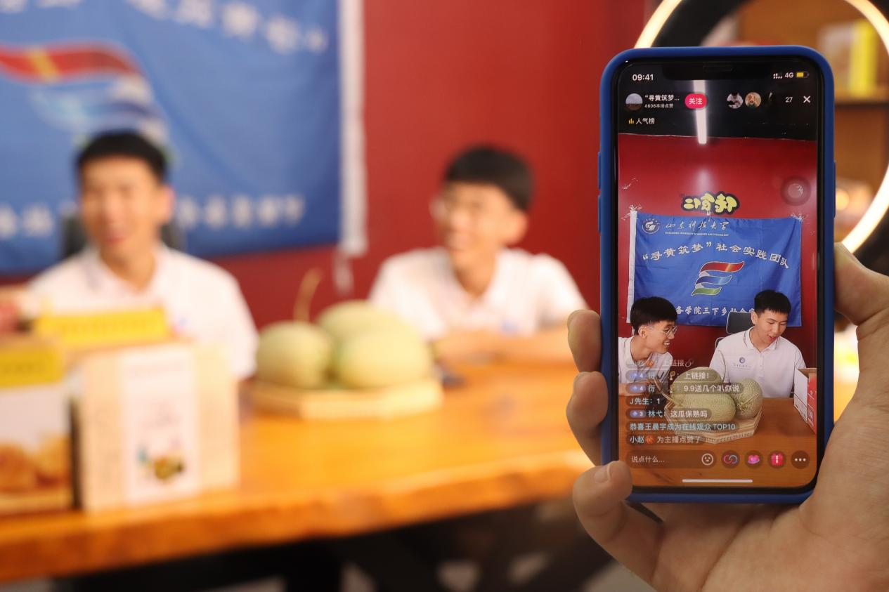 7月23日,“寻黄筑梦”实践团队来到董集镇山东共集文化传媒有限公司,借助公司直播平台向广大网友推介杨庙社区种植的网纹瓜,助力农产品推广。