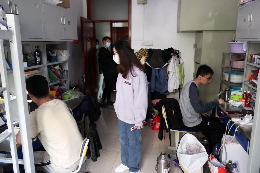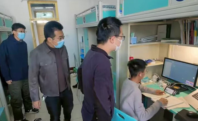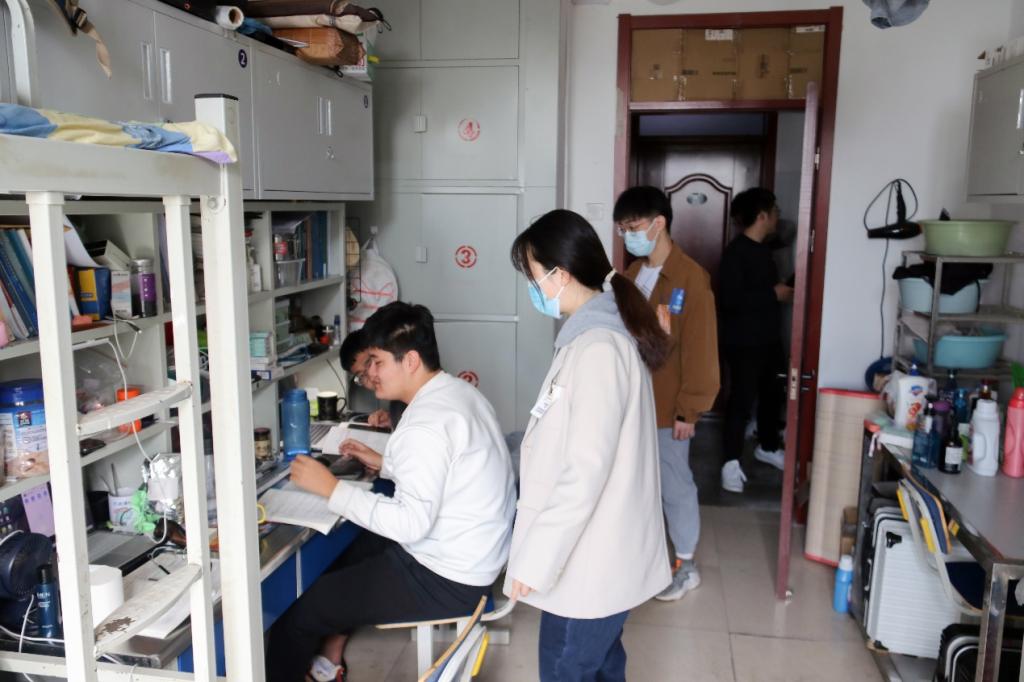 老师们亲切询问同学们近期上网课的具体情况,详细了解同学们网课中存在的问题和上课表现。对于初入校园的2022级新生,老师们仔细询问了同学们线上教学的学习适应、网络流畅性、教师上课效果以及与任课老师互动交流等情况,鼓励同学们要尽快适应上课方式的转变,提高学习效率,把握好线上学习的每分每秒,绝不懈怠,以积极的心态面对常态化疫情防控的学习生活。随后,老师们对员工宿舍的用电安全、内务情况等进行了认真检查,并针对检查过程中发现的问题给予整改建议。老师们强调,在当下严峻的疫情防控形势下,同学们要自觉遵守各项防疫规定,及时开窗通风,勤洗手,做好宿舍卫生消毒工作,养成良好的卫生习惯和健康的生活方式。(文:李梦琪 郝俊硕 图:张泓南 刘树豪)