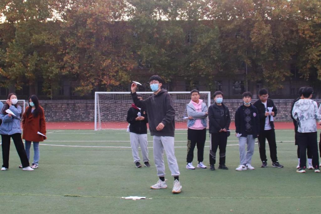 比赛分为A、B两组进行,根据纸飞机的飞行距离进行排名。参赛选手们查阅了大量资料了解空气动力学的知识,掌握了增加纸飞机动力的方法,快速折好自己的纸飞机,卯足力气,采用最理想的出手角度和速度投掷飞机,努力让自己的纸飞机飞得更远。一架架载着青春梦想的纸飞机在空中划过一道又一道绚丽的弧线,在欢乐声中飞向远方。