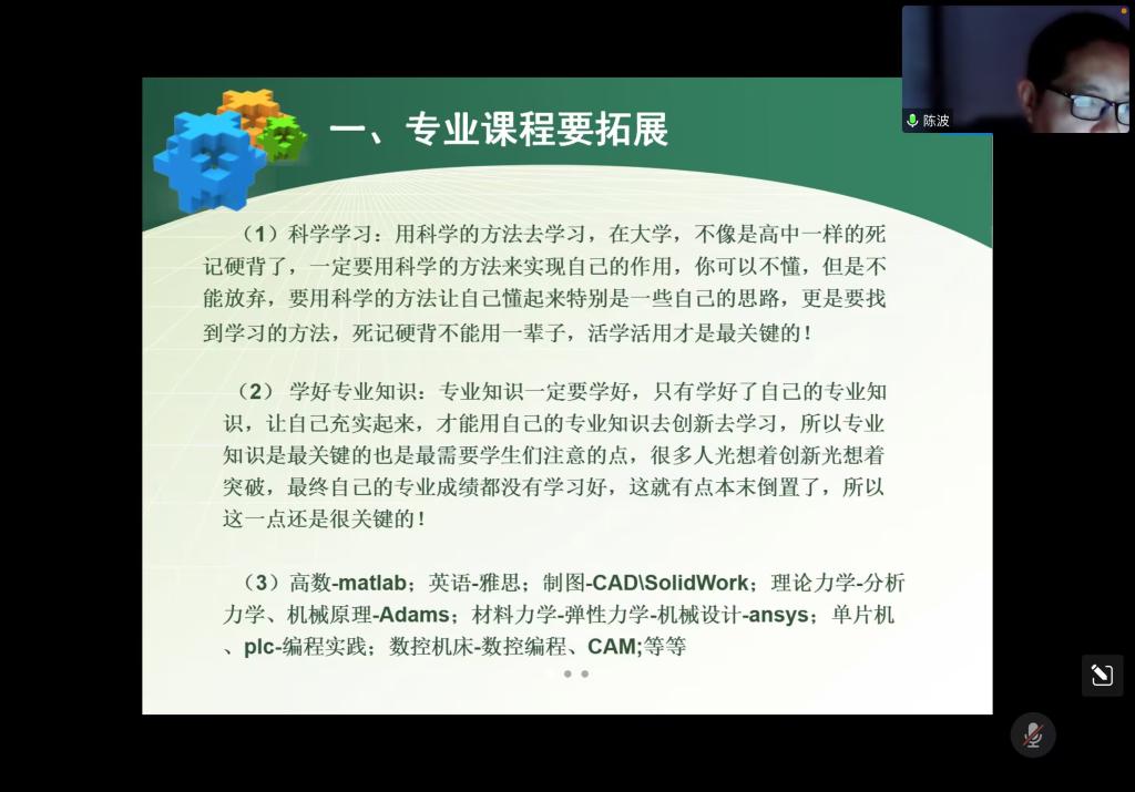 在本次讲堂中,陈波老师从科学学习方法、学好专业知识、各类学科重要知识等方面为同学们进行了专业课程拓展的讲解,详细介绍了英国上市公司365官网员工科技创新竞赛类别认定名单,举例阐述了论文专利的重要性和论文查询的方式,并围绕近年来的优秀创新训练项目,着重讲述了在“挑战杯”老员工课外学术科技作品竞赛中如何选择适合自己的题目。讲堂上,陈波与同学们积极交流,就同学们在开展科技创新活动方面提出的问题一一作答。陈波鼓励道,同学们要正确做好个人定位,发挥自己的长处,选择适合个人的发展方向,积极通过走进工程、走进企业、走进实验室、走进教师项目、社会实践和假期实习等多种方法来提高自己的专业实践能力,培养创新思维能力,为以后的科创研究筑牢基础。