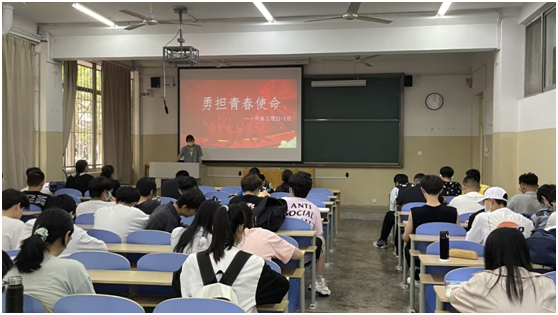 会议围绕“勇担青春使命”这一光荣而伟大的时代主题,用PPT讲解的形式,向同学讲述了一个个生动感人的红色故事,将同学们带回那段艰难而光荣的峥嵘岁月,感悟党和人民百年来风雨兼程的奋斗历程。无数先烈的人生轨迹启示我们:不能忘记革命先烈以鲜血浇灌理想的英勇事迹,更不能忘却英雄前辈用生命捍卫信仰的执着坚守。通过学习“勇担青春使命”这一课题,同学们再次认识并感悟了党和国家团结奋斗的光辉历程和新时代下充满活力的红色精神.大家纷纷表示,将牢记时代赋予自身的历史使命,紧跟党的旗帜引领,不忘初心,做新时代有理想肯吃苦敢奋斗的好青年。