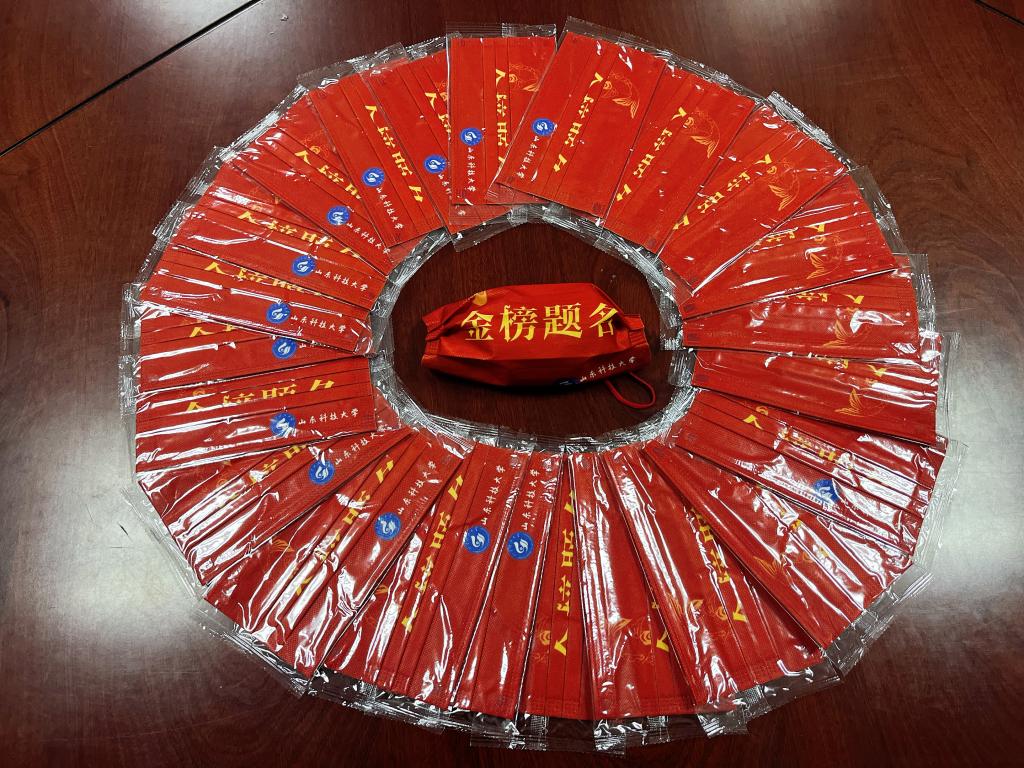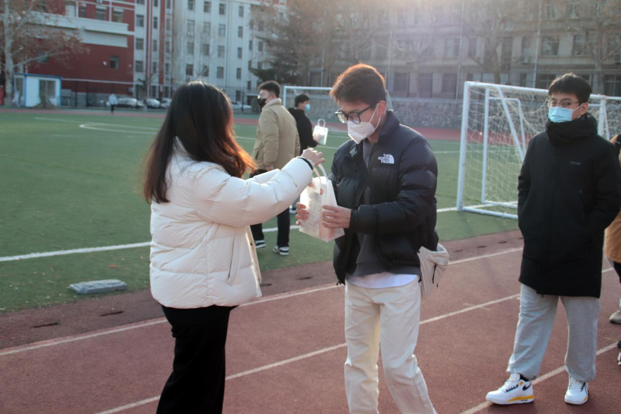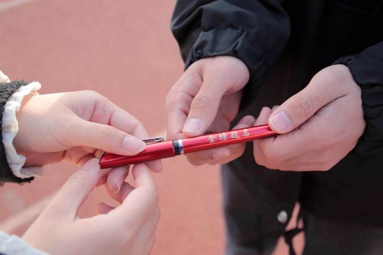 精心挑选的“吉祥物”为学子们送上关于勇气和毅力的奖赏。文具袋、橡皮、涂卡笔,“金榜题名”的“加油”套装,给即将踏上战场的学子们“补充弹药”,助力学子日夜兼程的奋战时光。黄澄澄的脐橙摆成心形,寓意着“心”想事“橙”,有着山科专属图案的口罩将代表学院陪伴着学子们度过备战考研的时光,礼袋中的暖宝宝将给每一位冬日孤独的“赶路人”穿上温暖的“铠甲”,老师们亲手送出山科特制的签字笔,祝愿学子们“拔出笔帽、抽刀出鞘“时,带着学院的期望和祝福,有着“金榜题名”的信心和“当凌绝顶”的傲气。